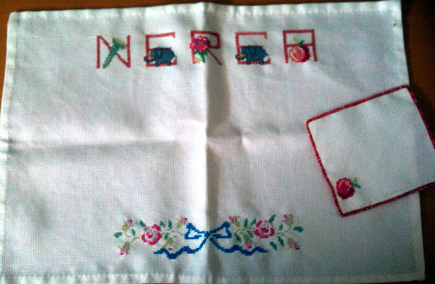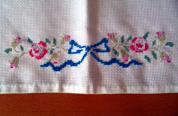 He hecho un mantel y un posavasos de punto de cruz. He tardado un mes. Hay días que no quería hacer, pero lo conseguí. Me ha gustado mucho.